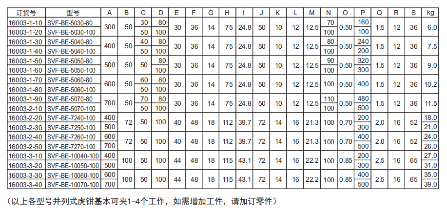 夹持力:SVF-50 :1000 kgf