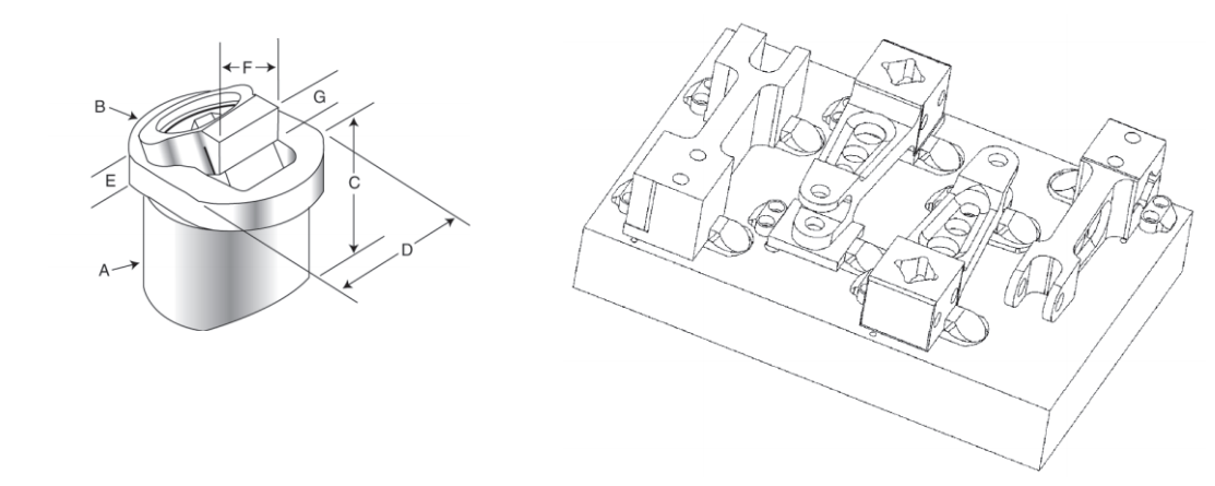 丹那夹持件的特点在于安装于治具表面下,