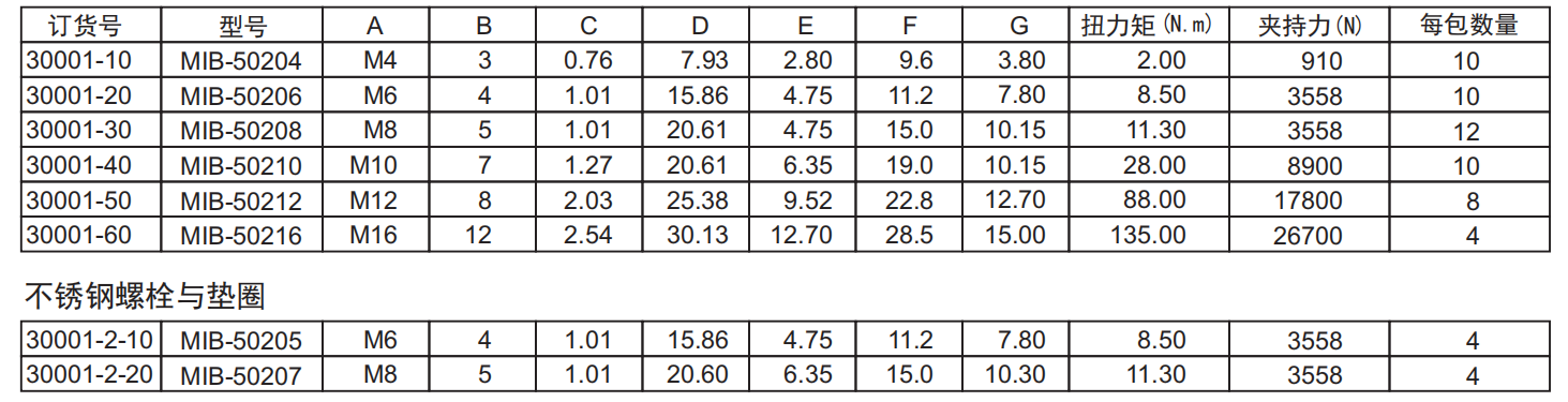 零件组成:硬化钢螺栓与六角黄铜垫圈
