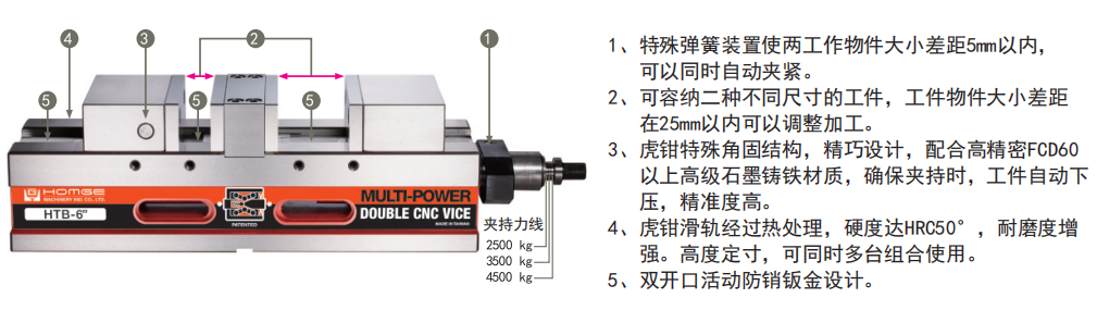 一次可夹持双工件,省时、省力、高效率!
