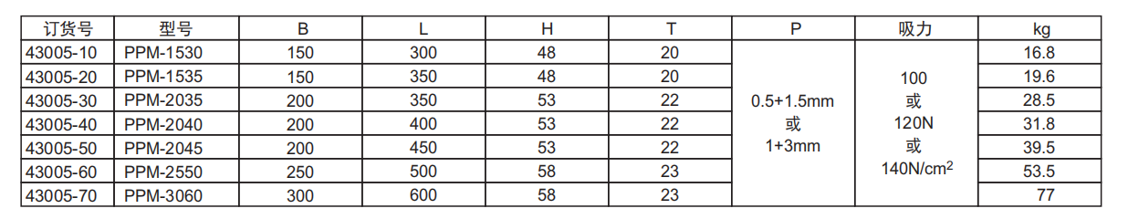 面板磨损极限8mm 常规吸力100-120N/cm (2 日本工业标准)