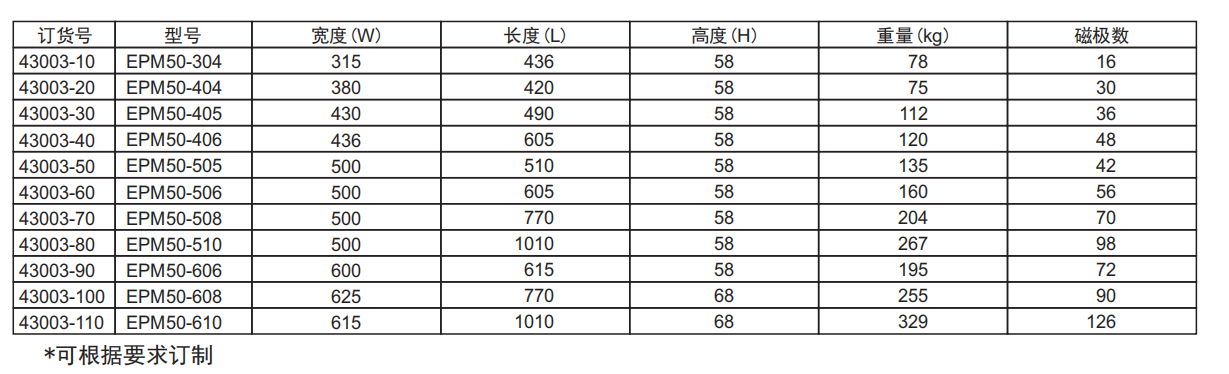 型号:EPM-75 方形磁极75x75mm,极力学>16.5kg/cm 2