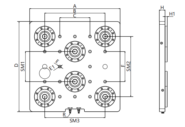 通过基板上的沉头孔锁紧在T型槽上,安装简单;