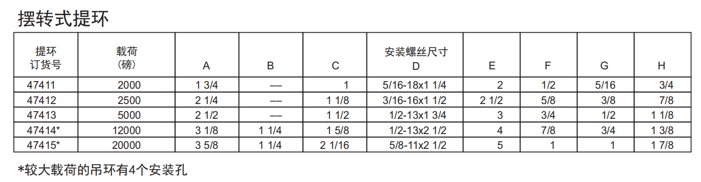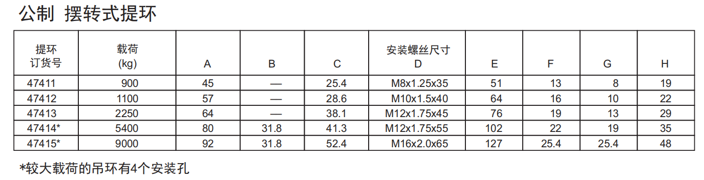 摆转式提环是个低位结构提吊装置,可摆转180°。