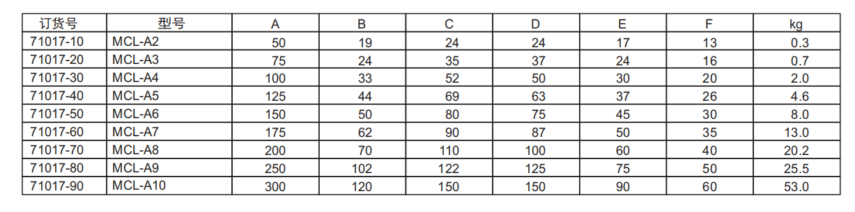 型号:MCL-A2,A3,A4,A5,A6,A7,A8,A9,A10
