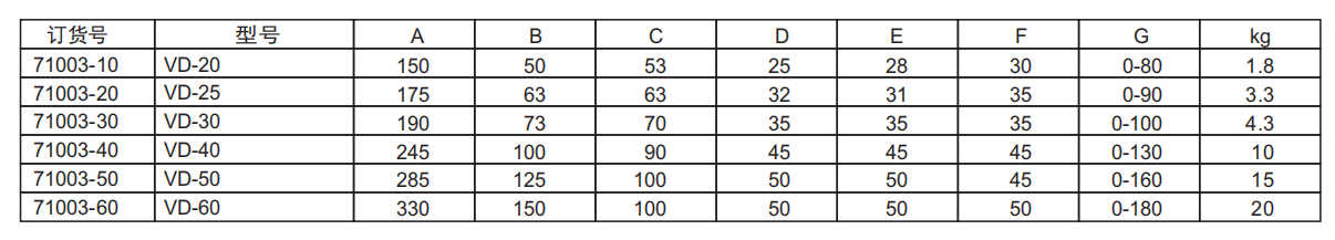 型号:VD-20,25,30,40,50、VD-60