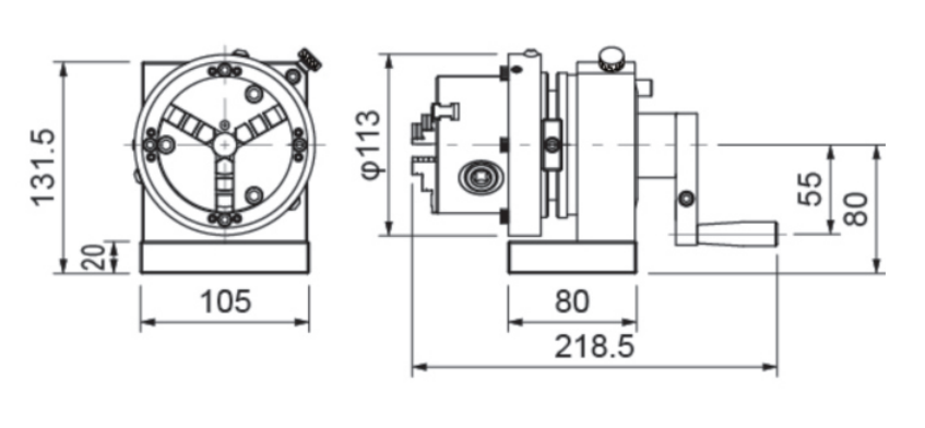 旋转中心高度:80mm 分割24等份、分度15度±10"